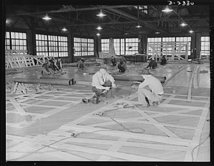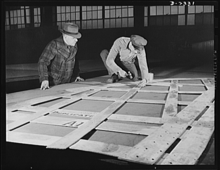 - This worker in the mold loft is painting over the marks made on steel plates from wooden templates, or patterns. The original marking is scratched onto the steel, and this man brings them out in white. All parts are prefabricated in this huge Eastern plant which turned out freight cars. The completed sections are then carried six miles to the ways on flatcars. Bethlehem-Fairfield Shipyards Inc., Baltimore, Maryland