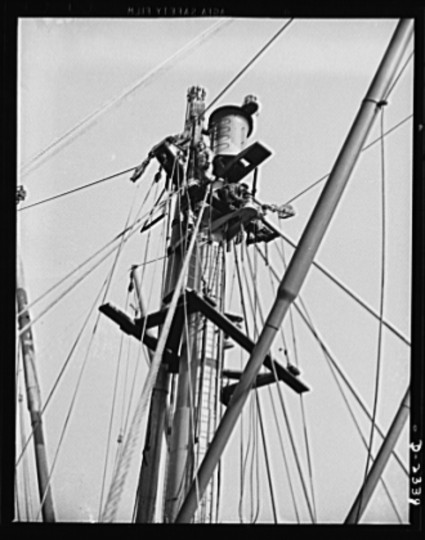 - These workers are making the final fitting and checking of the rigging of the masthead of a new member of the "Liberty Fleet" at a large Eastern shipyard. Bethlehem-Fairfield Shipyards Inc., Baltimore, Maryland