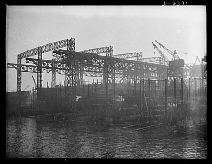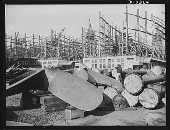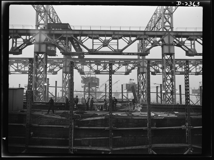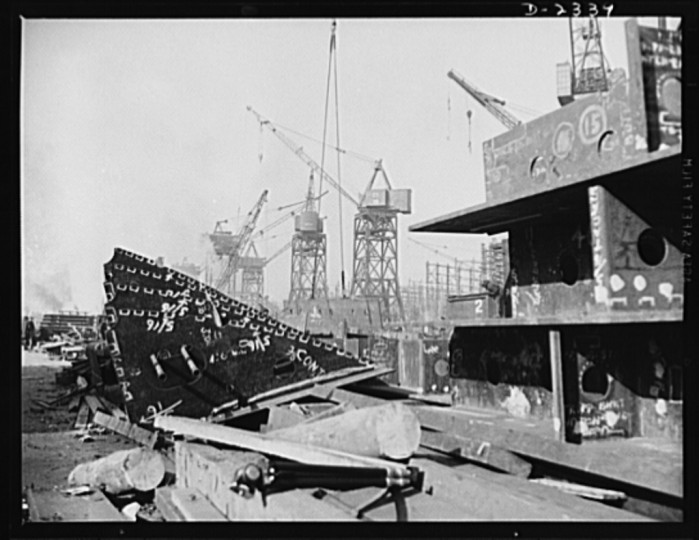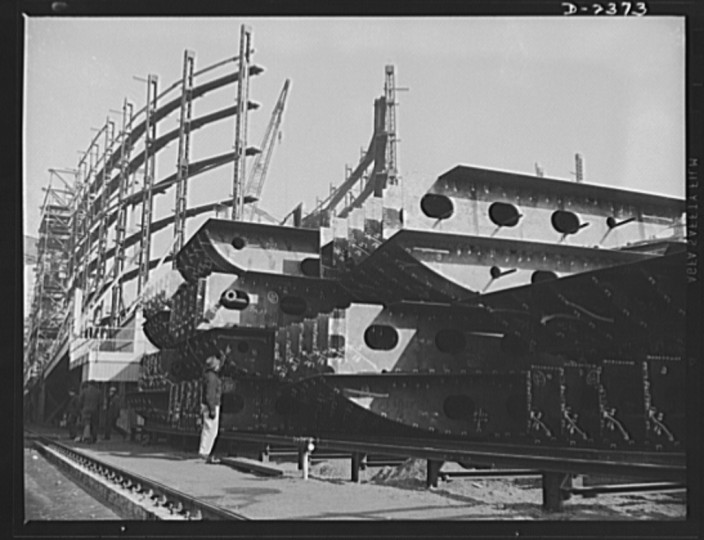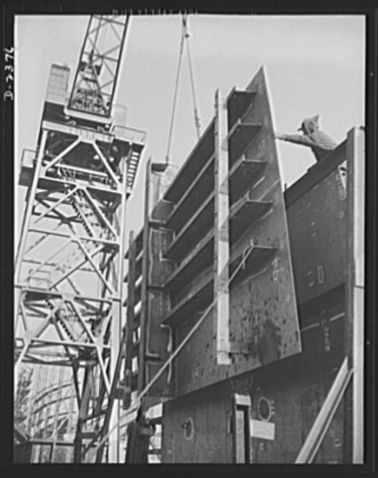 - Here are prefabricated tanks and deck girder sections ready to be hoisted up and set in their place in one of the new merchant ships under construction in a large Eastern shipyard. Bethlehem-Fairfield Shipyards Inc., Baltimore, Maryland