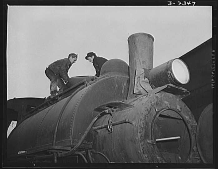 - Ships for war has meant the rehabilitation of numerous odd pieces of equipment unused for long periods, both in shipyards and in various other plants engaged in production of parts for ships. A discarded steam locomotive in a large Eastern yard is being tuned up for use once again. All parts are prefabricated in this huge Eastern plant which formerly turned out freight cars. The completed sections are then carried six miles to the ways on flatcars. Bethlehem-Fairfield Shipyards Inc., Baltimore, Maryland