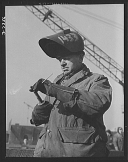 - Electric welding is a vital skill in the building of Uncle Sam's new merchant fleet. This welder inserting a new rod in his charged holder, on one of the ships. Production scene in an Eastern shipyard. Bethlehem-Fairfield Shipyards Inc., Baltimore, Maryland