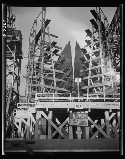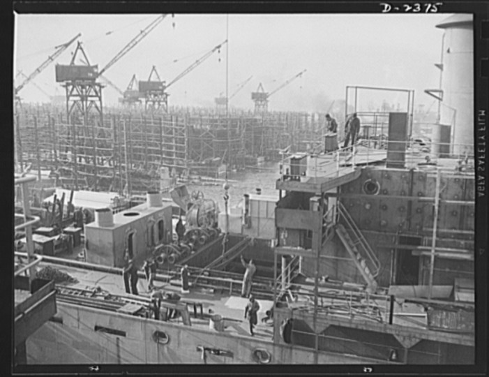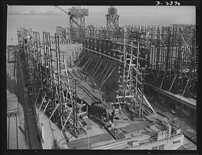 - This is the midship section of a new member of the Liberty Fleet, nearing completion at a large Eastern shipyard. In the background is a maze of scaffolding and cranes typical of the scene in many large American shipyards as builders work to make Uncle Sam master of the seas